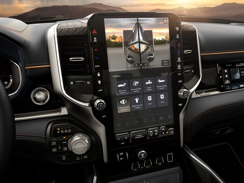 The 2026 Ram 1500 offers a choice of formidable engines. The available 3.0-liter twin-turbocharged inline-six Hurricane engine delivers an impressive 420 horsepower and 425 pound-feet of torque, providing ample power for towing and hauling. For even more muscle, opt for the beefy 5.7-liter HEMI eight-cylinder with eTorque mild hybrid technology, producing 395 horsepower and 410 pound-feet of torque. Pair either engine with the smooth-shifting eight-speed automatic transmission for optimized performance and efficiency.