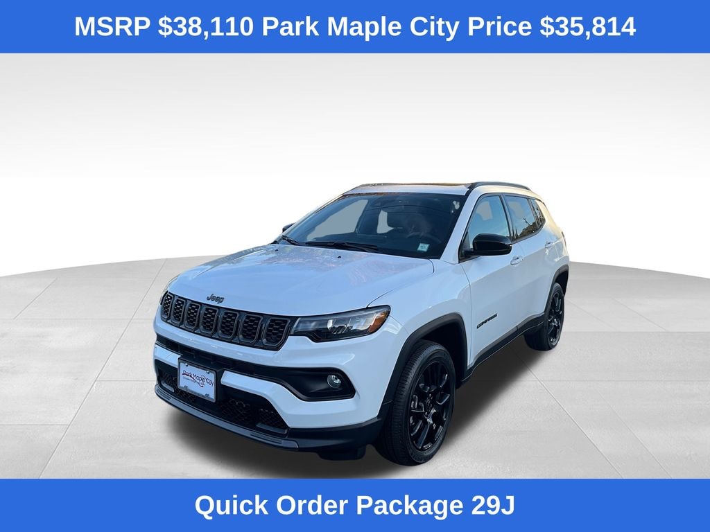 Bright White Clearcoat 2025 Jeep Compass Latitude 4WD 8-Speed Automatic 2.0L I4 DOHC 4WD, 10.1" Touchscreen Display, 2nd Row USB Type A/C Charge Only, 4-Wheel Disc Brakes, ABS brakes, Air Conditioning ATC w/Dual Zone Control, All-Season Floor Mats, Alloy wheels, Altitude Special Edition, Auto High-beam Headlights, Auto-Dimming Rear-View Mirror, Black Day Light Opening Moldings, Brake assist, Compass, Convenience Group, Delay-off headlights, Dual front impact airbags, Dual front side impact airbags, Electronic Stability Control, Emergency communication system: Jeep Connect, Foot Activated Open 'N Go Liftgate, Four wheel independent suspension, Front anti-roll bar, Front fog lights, Fully automatic headlights, Gloss Black Surround/Neutral Gray Rings, Heated front seats, Heated steering wheel, Humidity Sensor, Illuminated entry, Knee airbag, Leather Shift Knob, Leather steering wheel, Low tire pressure warning, Neutral Gray Exterior Badging, Occupant sensing airbag, Overhead airbag, Panic alarm, ParkView Rear Back-Up Camera, Piano Black Interior Accents, Power 2-Way Driver Lumbar Adjust, Power Adjust 8-Way Driver Seat, Power door mirrors, Power Front/Fixed Rear Full Sunroof, Power Liftgate, Premium Alpine Speaker System, Quick Order Package 29J, Radio: Uconnect 5 w/8.4" Display, Rear anti-roll bar, Remote keyless entry, Reversible Carpet/Vinyl Cargo Mat, Security system, Sliding Sun Visors w/Illuminated Mirrors, Speed control, Steering wheel mounted audio controls, Sun and Sound Group, Telescoping steering wheel, Tilt steering wheel, Traction control, Wheels: 18" x 7" Gloss Black Painted Aluminum, Windshield Wiper De-Icer.