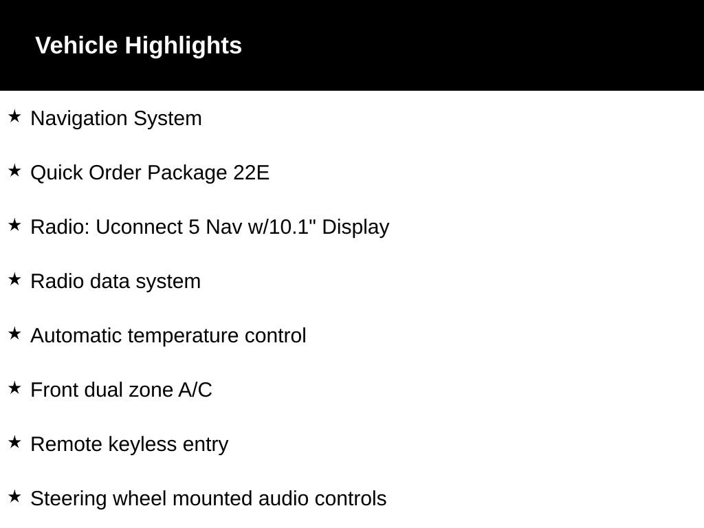 • Radio: Uconnect 5 Nav w/10.1" Display