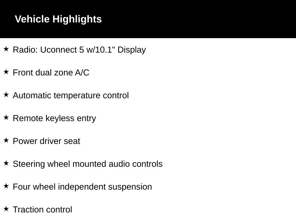 The Jeep Compass Limited is designed to elevate your driving experience with a wealth of premium features. Indulge in the comfort of the Leatherette Seats, the warmth of the Heated Steering Wheel, and the convenience of the Power Liftgate. Stay connected and entertained with the advanced Uconnect 5 infotainment system, featuring a stunning 10.1" display.