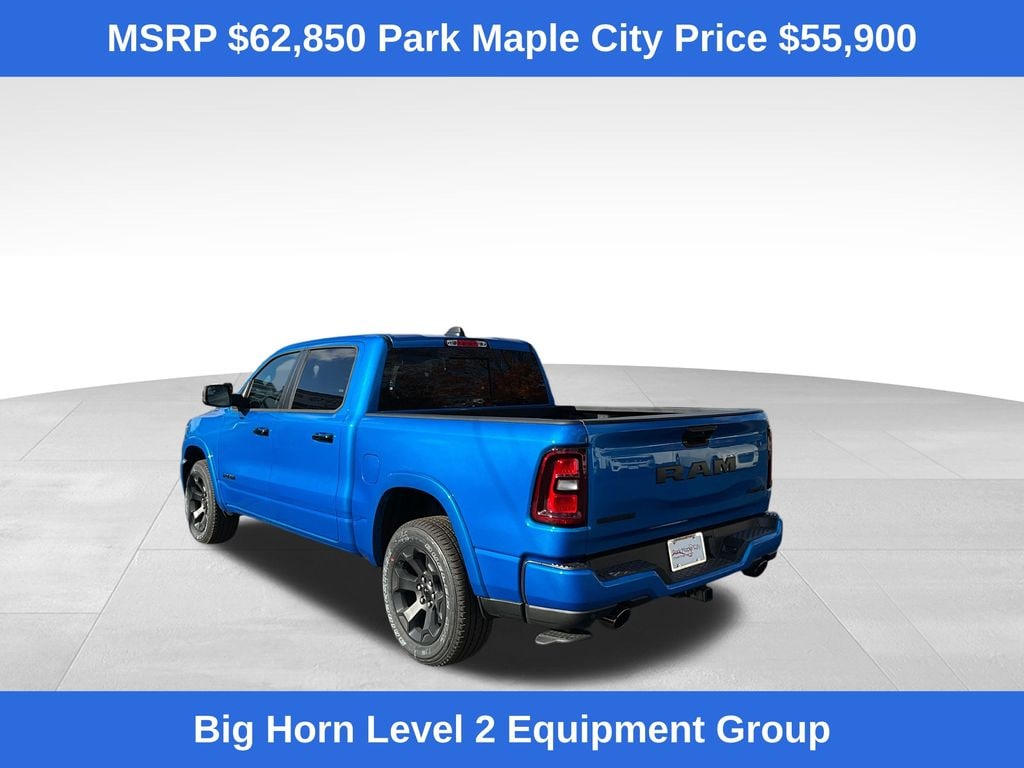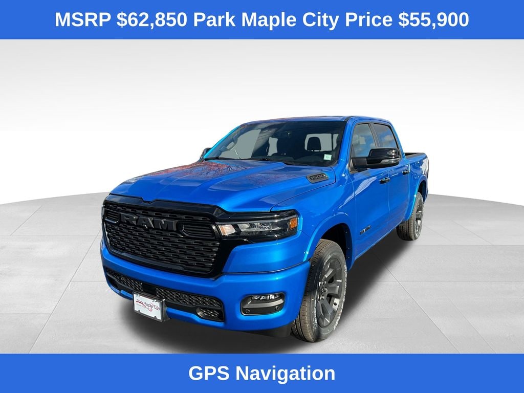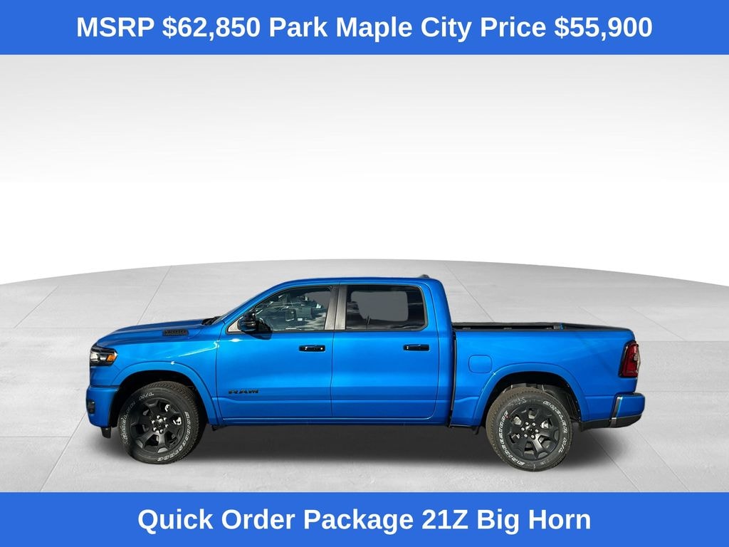 Hydro Blue Pearlcoat 2026 Ram 1500 Big Horn/Lone Star 4WD 8-Speed Automatic 3.0L I6 115V Auxiliary Power Outlet, 115V Auxiliary Rear Power Outlet, 12" Touchscreen Display, 2nd Row In Floor Storage Bins, 3 Rear Seat Head Restraints, 4 Way Front Headrests, 4-Wheel Disc Brakes, 400W Inverter, 48V Belt Starter Generator, 4G LTE Wi-Fi Hot Spot, 9 Amplified Speakers w/Subwoofer, ABS brakes, Accent Color Door Handles, Accent Color Premium Power Mirrors, Accent Color Tailgate Handle, Air Conditioning ATC w/Dual Zone Control, Alloy wheels, Anti-Spin Differential Rear Axle, Apple CarPlay, Apple CarPlay/Android Auto, Auto High-beam Headlights, Auto Power-Folding Mirrors, Auto-Dimming Exterior Driver Mirror, Auto-Dimming Rear-View Mirror, Bed Utility Group, Big Horn Level 2 Equipment Group, Black Exterior Mirrors, Black Exterior Truck Badging, Black Headlamp Bezels, Black Interior Accents, Black Painted Exterior Mirrors Caps, Black Premium Power Mirrors, Black Tail Lamp Bezels, Body Color Fender Flares, Body Color Front Bumper, Body Color Rear Bumper w/Step Pads, Brake assist, Bucket Seats, Center Console Parts Module, Cluster 7.0" TFT Color Display, Configurable Drive Mode, Connected Travel & Traffic Services, Connectivity - US/Canada, Convex Wide-Angle Exterior Mirror Insert, Delay-off headlights, Deluxe Cloth Bucket Seats, Disassociated Touchscreen Display, Dual Exhaust w/Black Tips, Dual front impact airbags, Dual front side impact airbags, Electronic Stability Control, Exterior 115V AC Outlet, Exterior Mirrors Courtesy Lamps, Exterior Mirrors w/Heating Element, Exterior Mirrors w/Supplemental Signals, Front anti-roll bar, Front fog lights, Front Seat Back Map Pockets, Front wheel independent suspension, Full Length Floor Console, Fully automatic headlights, Global Telematics Box Module (TBM), Glove Box Lamp, Google Android Auto, GPS Antenna Input, GPS Navigation, Grille Black Surround Black Mesh, HD Radio, Heated door mirrors, Heated Front Seats, Heated Steering Wheel, Integrated Center Stack Radio, Integrated Voice Command w/Bluetooth, Leather Wrapped Steering Wheel, LED Dome Lamp w/On/Off Switch, LED Footwell Lighting, Low tire pressure warning, Manual Adjust 4-Way Front Passenger Seat, Media Hub w/2 Charge Only USBs, MOPAR 4 Adjustable Cargo Tie-Down Hooks, MOPAR Spray In Bedliner, Night Edition, Occupant sensing airbag, Overhead airbag, Overhead LED Lamps, Panic alarm, ParkView Rear Back-Up Camera, Pick-Up Box Lighting, Power 2-Way Driver Lumbar Adjust, Power Adjust 8-Way Driver Seat, Power Adjustable Pedals, Power door mirrors, Premium Overhead Console, Quick Order Package 21Z Big Horn, Radio: Uconnect 5 Nav w/12.0" Display, RAM Grille Badge - Black, Rear 60/40 Folding Seat, Rear anti-roll bar, Rear Center Armrest, Rear Power Sliding Window, Rear Window Defroster, Remote keyless entry, Remote Tailgate Release, Security Alarm, SiriusXM Radio Service, SiriusXM w/360L, Speed control, Steering Wheel Mounted Audio Controls, Sun Visors w/Illuminated Vanity Mirrors, Tilt steering wheel, Traction control, Trailer Brake Control, Universal Garage Door Opener, USB Host Flip, Wheels: 20" x 9.0" Aluminum Painted Clad, Wheels: 20" x 9" Aluminum Chrome Clad (WRK). Price includes: $3500 - 2026 National Retail Consumer Cash . Exp. 12/01/2025
