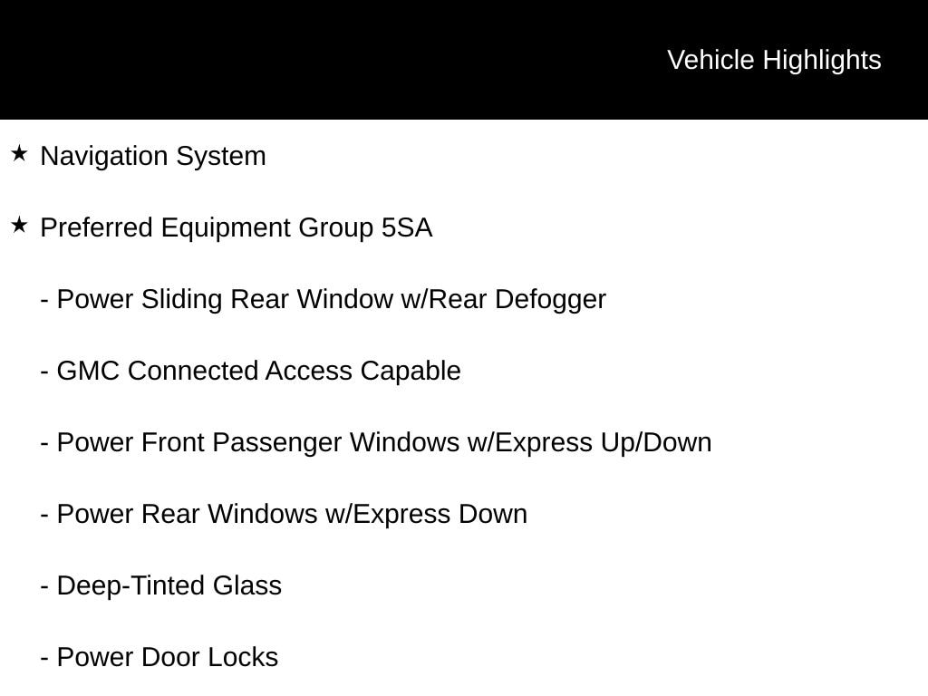10-Speed Automatic, 4WD, Jet Black Leather, 12-Way Power Driver Seat Adjuster w/Lumbar, 12-Way Power Passenger Seat Adjuster w/Lumbar, 120-Volt Bed Mounted Power Outlet, 120-Volt Interior Power Outlet, 170 Amp Alternator, 2 Charge/Data USB Ports Inside Center Console, 2 Type-C Charge-Only Rear USB Ports, 2 USB Ports, 4-Wheel Disc Brakes, ABS brakes, Adaptive suspension, Alloy wheels, Apple CarPlay/Android Auto, Auto High-beam Headlights, Auto-dimming door mirrors, Auto-dimming Rear-View mirror, Auto-Locking Rear Differential, Automatic temperature control, Auxiliary External Transmission Oil Cooler, Bed View Camera, Brake assist, Chrome Header w/Signature Denali Chrome Grille, Chrome Recovery Hooks, Chrome Wheel To Wheel Assist Steps, Color-Keyed Carpeting Floor Covering, Deep-Tinted Glass, Delay-off headlights, Denali Premium Suspension w/Adaptive Ride Control, Dual front impact airbags, Dual front side impact airbags, Electric Rear-Window Defogger, Electronic Stability Control, Emergency communication system: OnStar and GMC connected services capable, Enhanced Automatic Emergency Braking, Floor-Mounted Center Console, Front anti-roll bar, Front dual zone A/C, Front fog lights, Front Rain-Sensing Wipers, Front wheel independent suspension, Fully automatic headlights, GMC Connected Access Capable, HD Surround Vision, Heated 2nd Row Outboard Seats, Heated door mirrors, Heated Driver & Front Outboard Passenger Seating, Heated front seats, Heated rear seats, Heated steering wheel, Heavy-Duty Air Filter, Hill Descent Control, Hitch Guidance, Hitch View, Illuminated entry, In-Vehicle Trailering System App, Integrated Trailer Brake Controller, Keyless Open & Start, Lane Keep Assist w/Lane Departure Warning, LED Cargo Area Lighting, Low tire pressure warning, Memory seat, Multicolor 15" Diagonal Head-Up Display, Navigation System, Occupant sensing airbag, OnStar & GMC Connected Services Capable, Outside temperature display, Overhead airbag, Panic alarm, Perimeter Lighting, Power Door Locks, Power Front Passenger Windows w/Express Up/Down, Power Front Windows w/Driver Express Up/Down, Power Rake & Telescoping Steering Column, Power Rear Windows w/Express Down, Power Sliding Rear Window w/Rear Defogger, Power Sunroof, Preferred Equipment Group 5SA, Premium Bose 7-Speaker Sound System, Push Button Start, Radio: Premium GMC Infotainment Audio System, Rain sensing wipers, Rear Camera Mirror, Rear Cross Traffic Braking, Rear Pedestrian Detection, Rear Wheelhouse Liners, Remote keyless entry, Security system, SiriusXM w/360L, Speed control, Speed-sensing steering, Split folding rear seat, Spray-On Pickup Bedliner w/Denali Logo, Steering Wheel Audio Controls, Steering wheel mounted audio controls, Technology Package, Telescoping steering wheel, Theft Deterrent System (Unauthorized Entry), Traction control, Trailer Camera Provisions, Trailer Side Blind Zone Alert, Trailering Package, Ultrasonic Front & Rear Park Assist, Universal Home Remote, Variably intermittent wipers, Ventilated Driver & Front Passenger Seats, Ventilated front seats, Wheels: 20" x 9" Multi-Dimensional Polished Alum, Wi-Fi Hotspot Capable, Wireless Apple CarPlay/Wireless Android Auto, Wireless Charging.