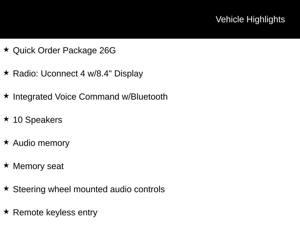 • Wireless phone connectivity: Uconnect w/Bluetooth