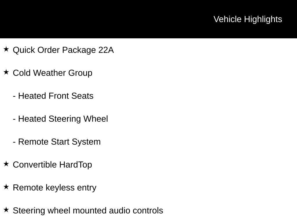 • COLD WEATHER GROUP: Heated Steering Wheel, Remote Start System, Heated Front Seats
