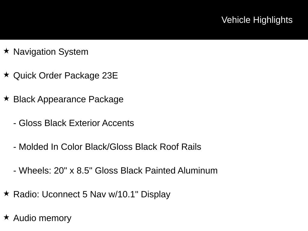 ⢠Radio: Uconnect 5 Nav with 10.1" Display