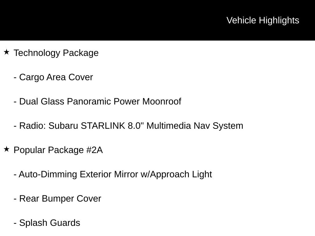 ⢠Radio: Subaru STARLINK 8.0" Multimedia Nav System
